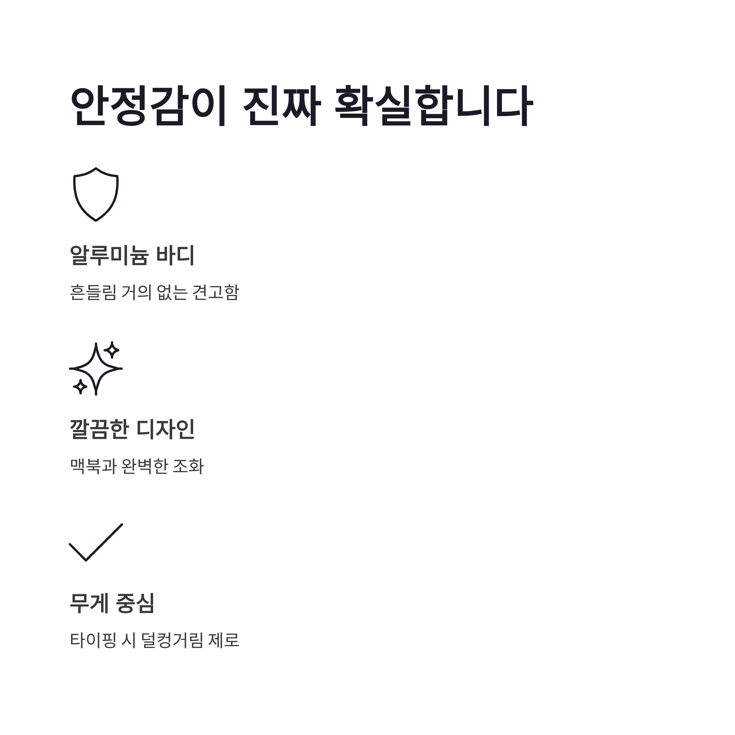 | 안정성 | 매우 좋음 | 흔들림 거의 없음 |