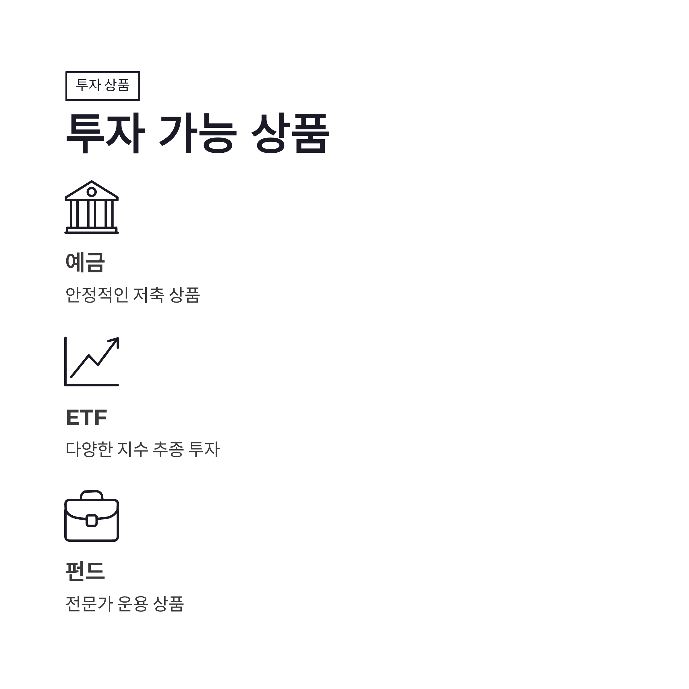 | 투자 가능 상품 | 예금, ETF, 펀드 등 |
