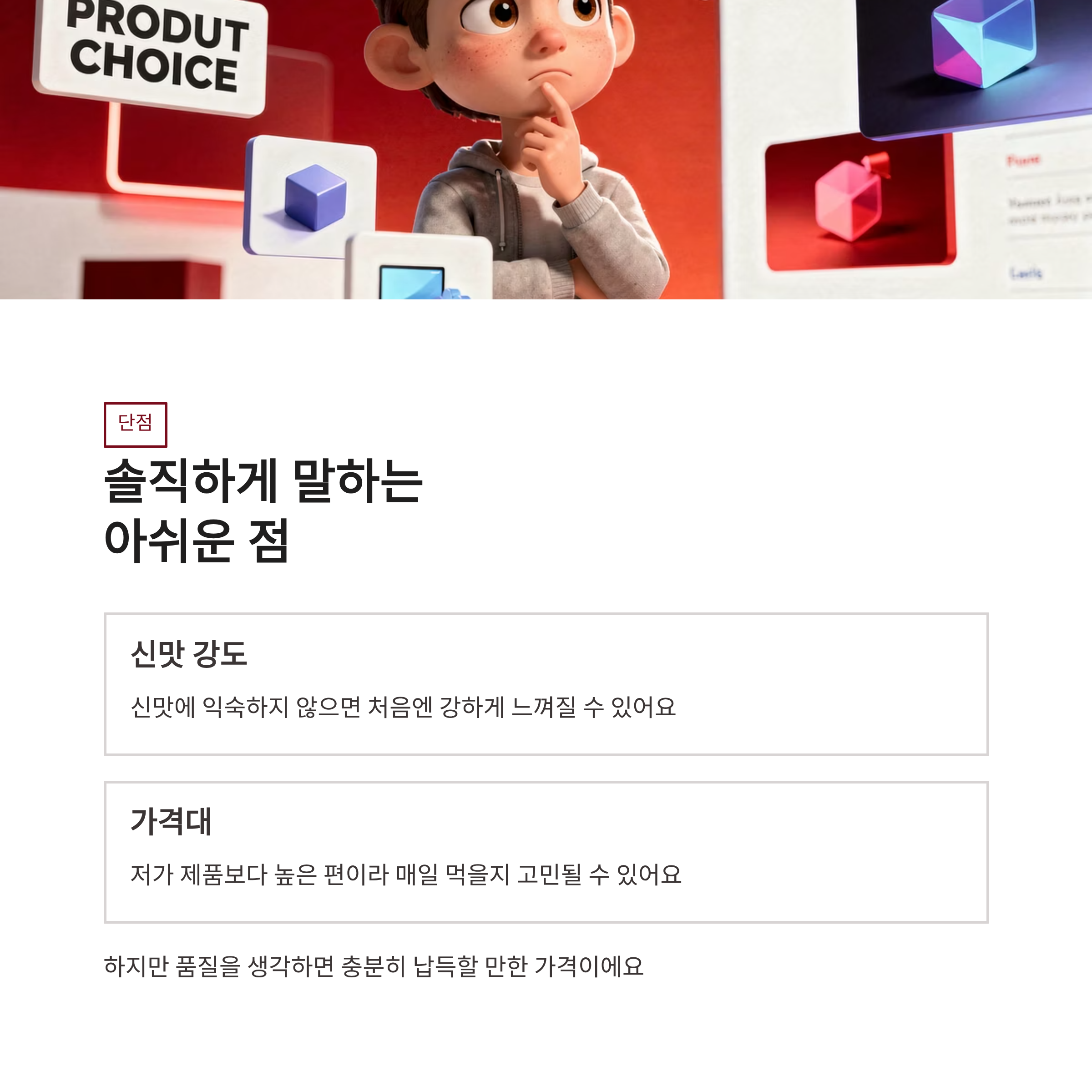 장점은 일단 간편함. 그리고 인위적인 향이 거의 없어요. 신맛도 부드러운 편이라 물을 많이 타지 않아도 괜찮았구요. 무엇보다 유기농 원액이라는 심리적 안정감? 이게 은근 큽니다 ㅋㅋ 단점이라면, 신맛에 익숙하지 않은 분들에겐 처음엔 살짝 강하게 느껴질 수 있어요. 또 가격대가 저가 제품보다는 높은 편이라 “매일 먹을까?” 고민은 생길 수 있겠더라구요. 그래도 품질 생각하면 납득은 갔어요.
