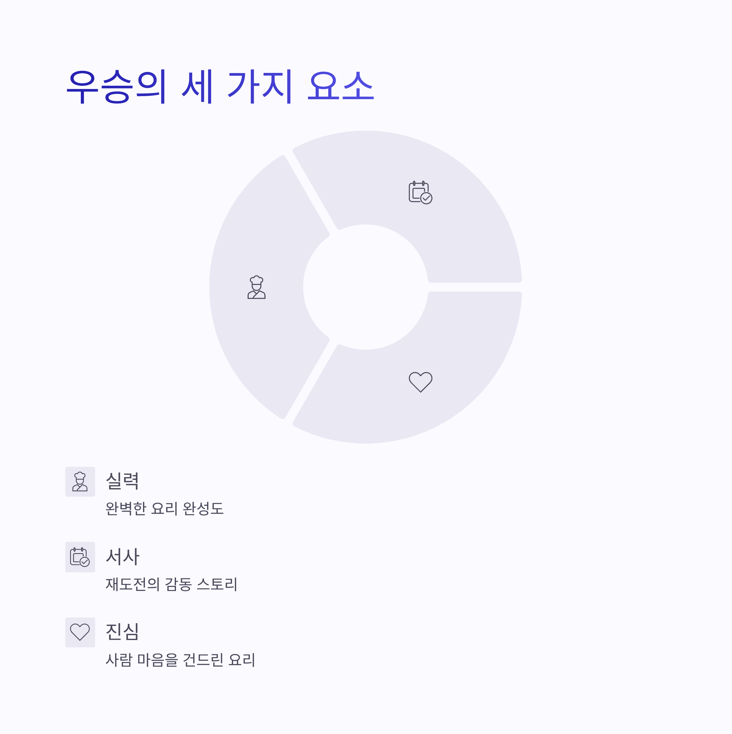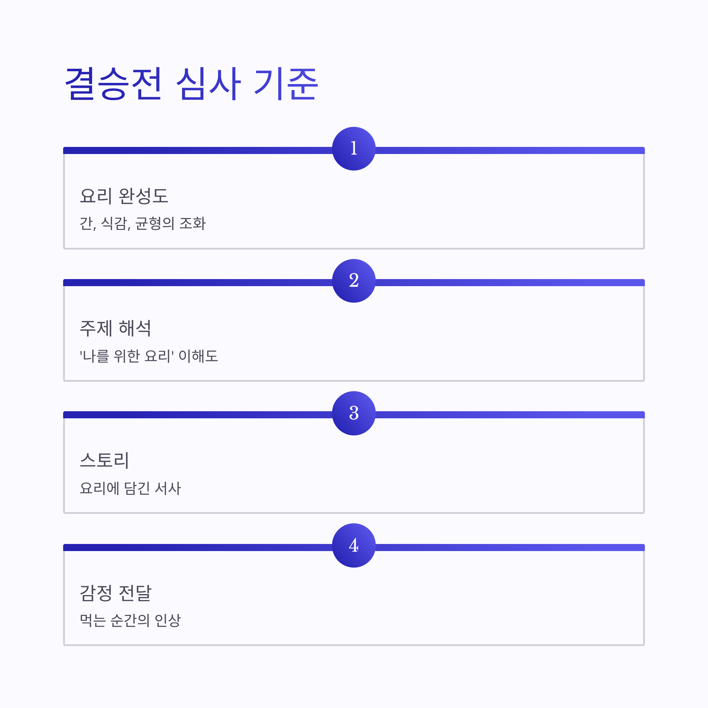 | 요리 완성도 | 간, 식감, 균형 |