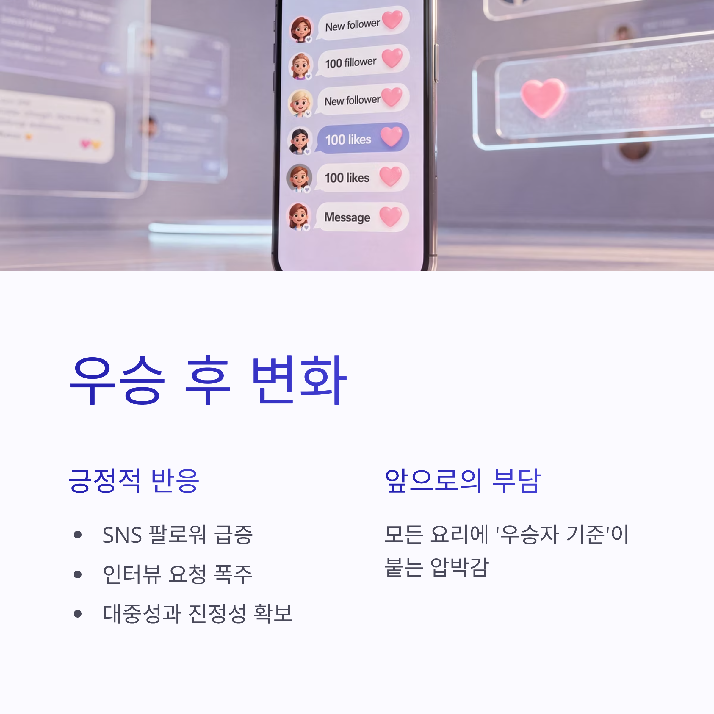 우승 이후 반응도 장난 아닙니다. SNS 팔로워 수 급증, 인터뷰 요청 폭주… 근데 개인적으로 좋은 건, 그가 여전히 담담하다는 점이었어요. 장점은 명확해요. 스토리 있는 셰프, 대중성과 진정성 둘 다 잡았다는 거. 반면 단점이라면, 앞으로 나오는 모든 요리에 ‘우승자 기준’이 붙는다는 부담이겠죠 ㅠㅠ 그래도 흑백요리사2 최강록 우승은 요리 예능 역사에 꽤 오래 남을 장면 같더라구요.