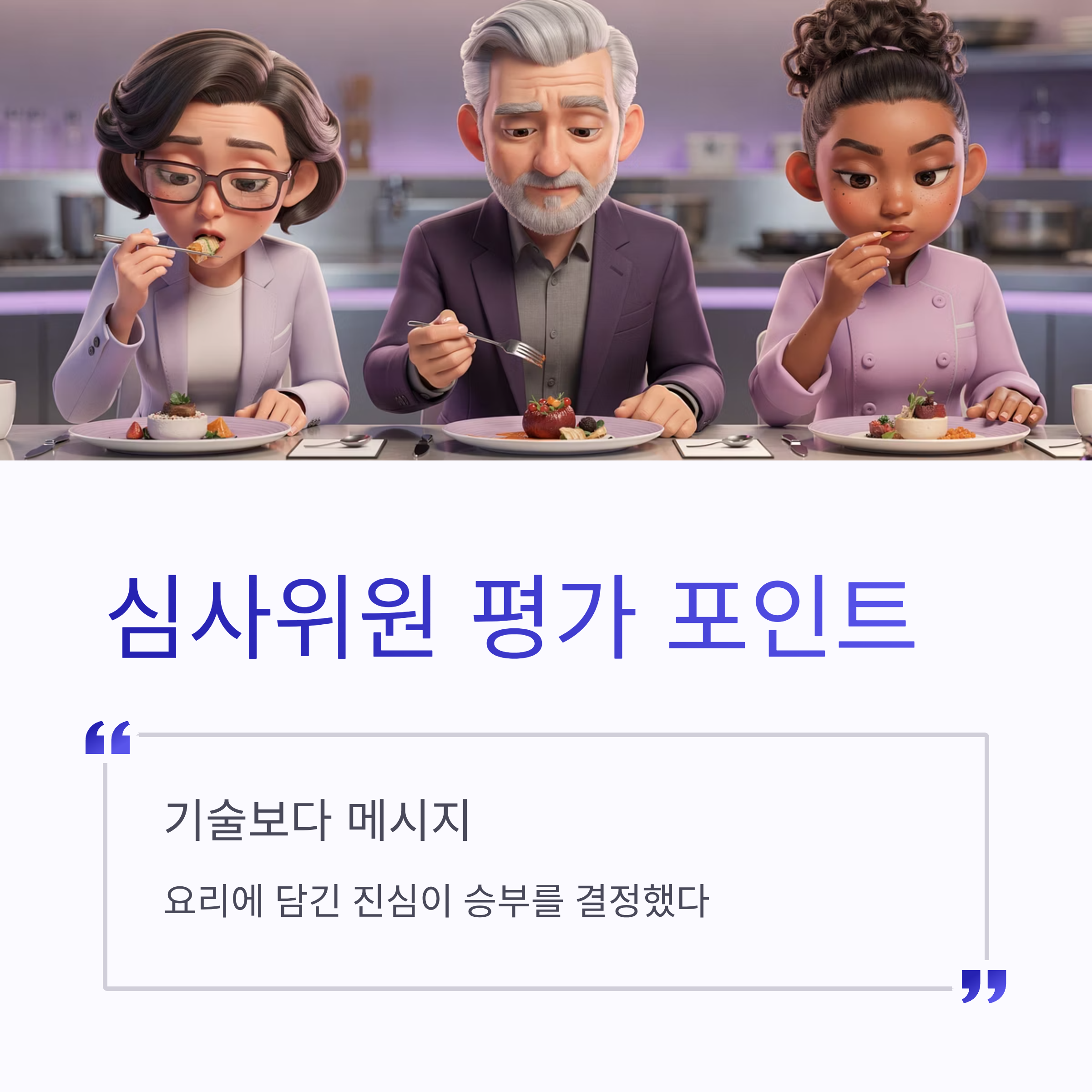 결승은 진짜 숨막혔습니다. 백수저·흑수저 구분이 무색할 정도였구요. 심사 기준도 꽤 명확했어요.