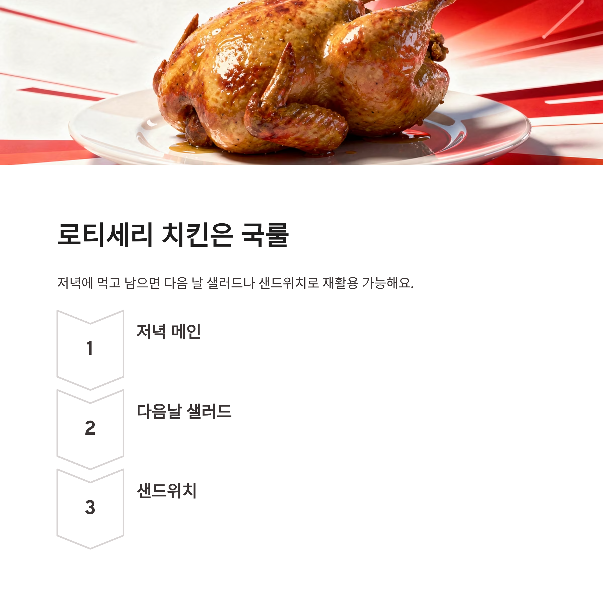 특히 로티세리 치킨은 진짜 국룰이에요. 코스트코 추천상품 얘기 나오면 빠질 수 없죠. 저녁에 먹고 남으면 다음 날 샐러드나 샌드위치로 재활용도 가능해서 만족도 높았구요. 이런 식으로 구성하니까 준비 시간도 확 줄었어요.