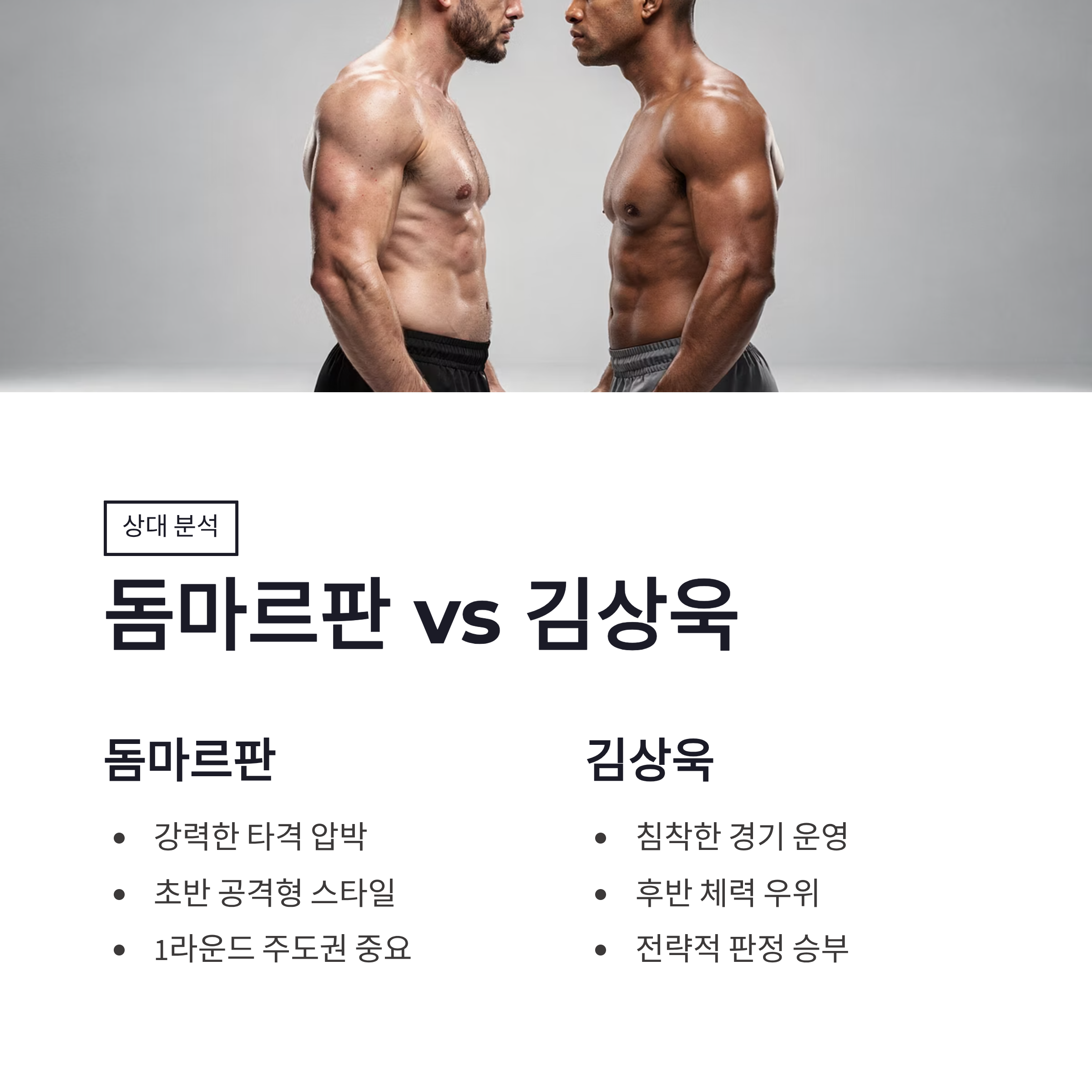 이번 김상욱 RTU 결승 상대인 돔마르판 선수도 만만치 않습니다. 타격 압박이 강한 스타일이라서 초반 흐름이 진짜 중요하겠더라구요. 김상욱 선수는 후반으로 갈수록 운영이 좋아지는 타입이라, 1라운드만 잘 넘기면 그림이 열린다는 느낌도 들었구요. 장점은 침착함, 단점은 초반 리스크 관리… 딱 이 포인트가 승부를 가를 것 같았습니다. 최근 RTU 트렌드를 보면 판정까지 가는 경우도 많아서, 김상욱 RTU 결승전은 전략 싸움이 될 확률이 꽤 높아 보입니다. 개인적으로는 2라운드 이후 흐름 가져오는 장면이 제일 기대되네요.