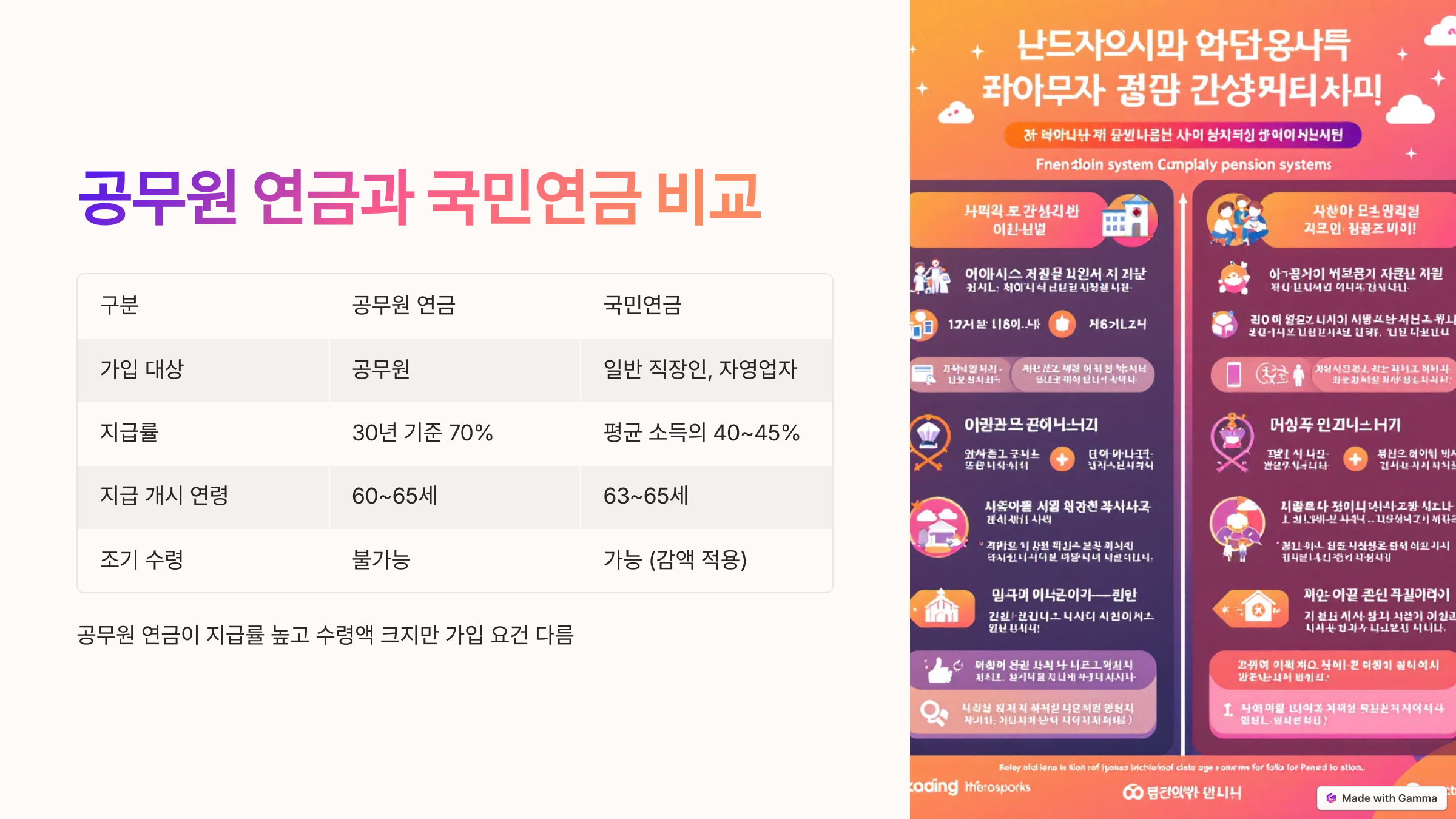 📌 5. 공무원 연금과 국민연금 비교