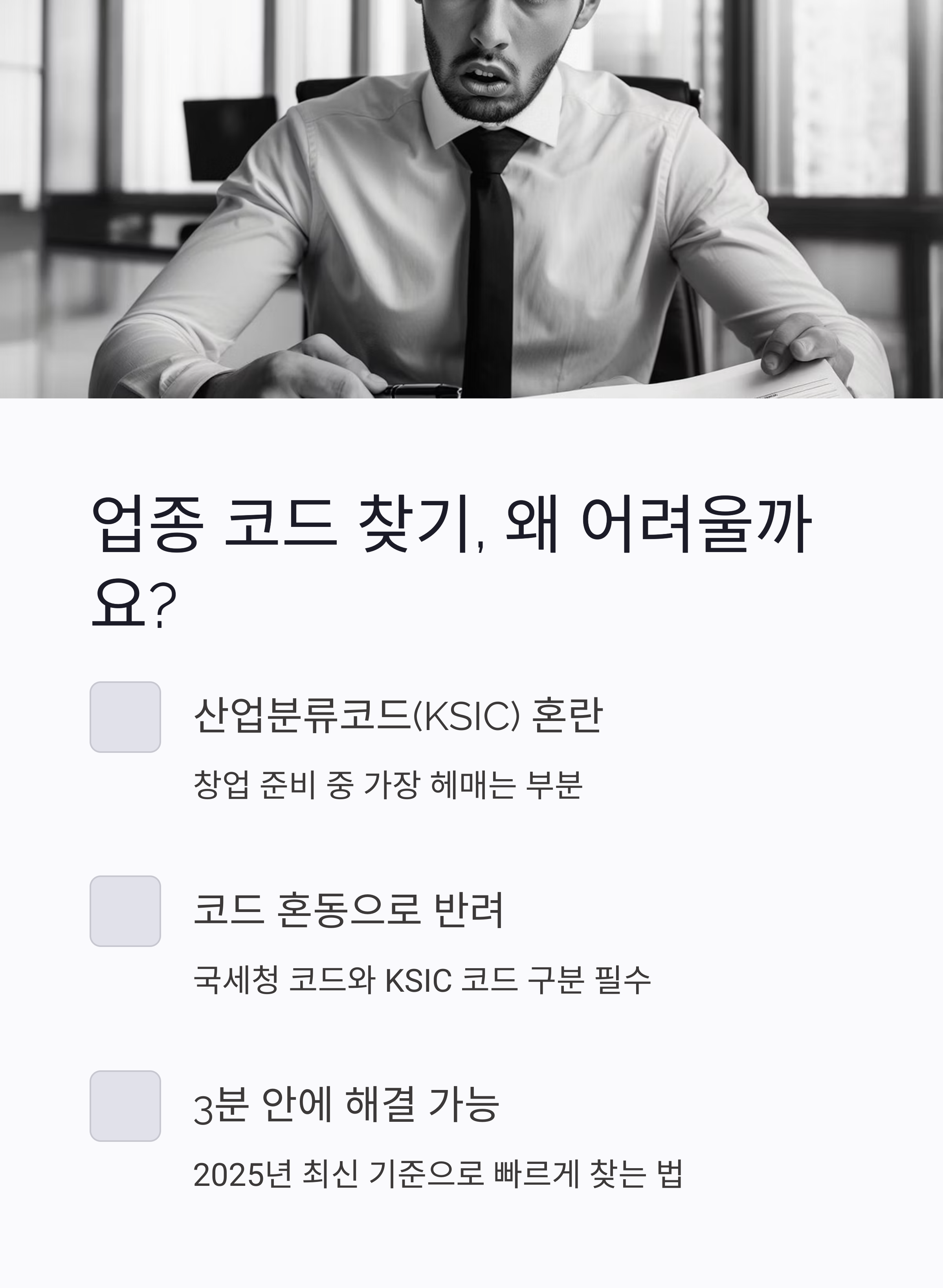 창업 준비 중, 사업자등록 할 때 제일 많이들 헤매는 거... 바로 산업분류코드(KSIC) 찾는 거예요.