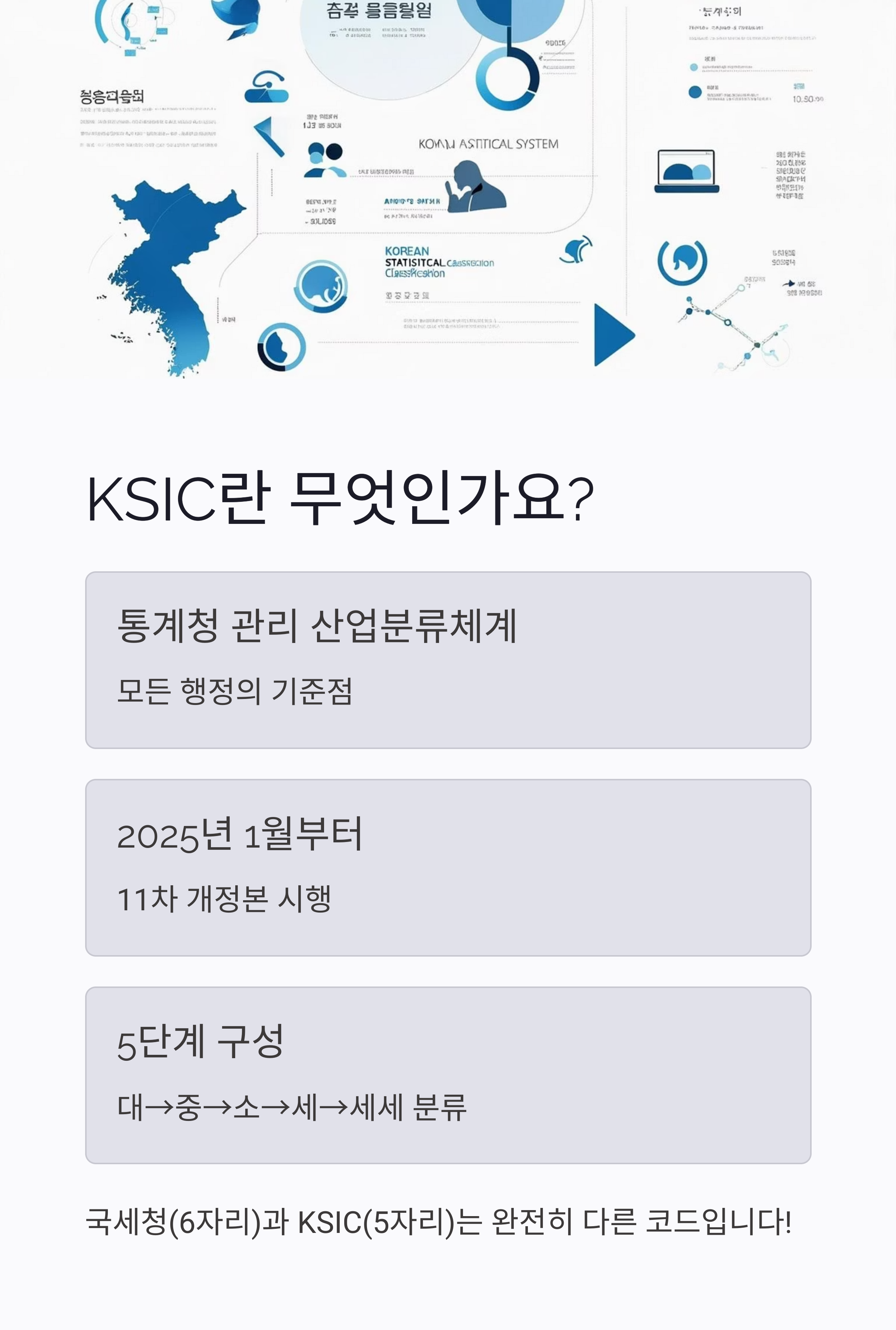 KSIC는 통계청이 관리하는 산업분류체계로, 정부지원사업, 사업자등록, 통계자료, 입주심사 등 거의 모든 행정의 ‘기준점’입니다.