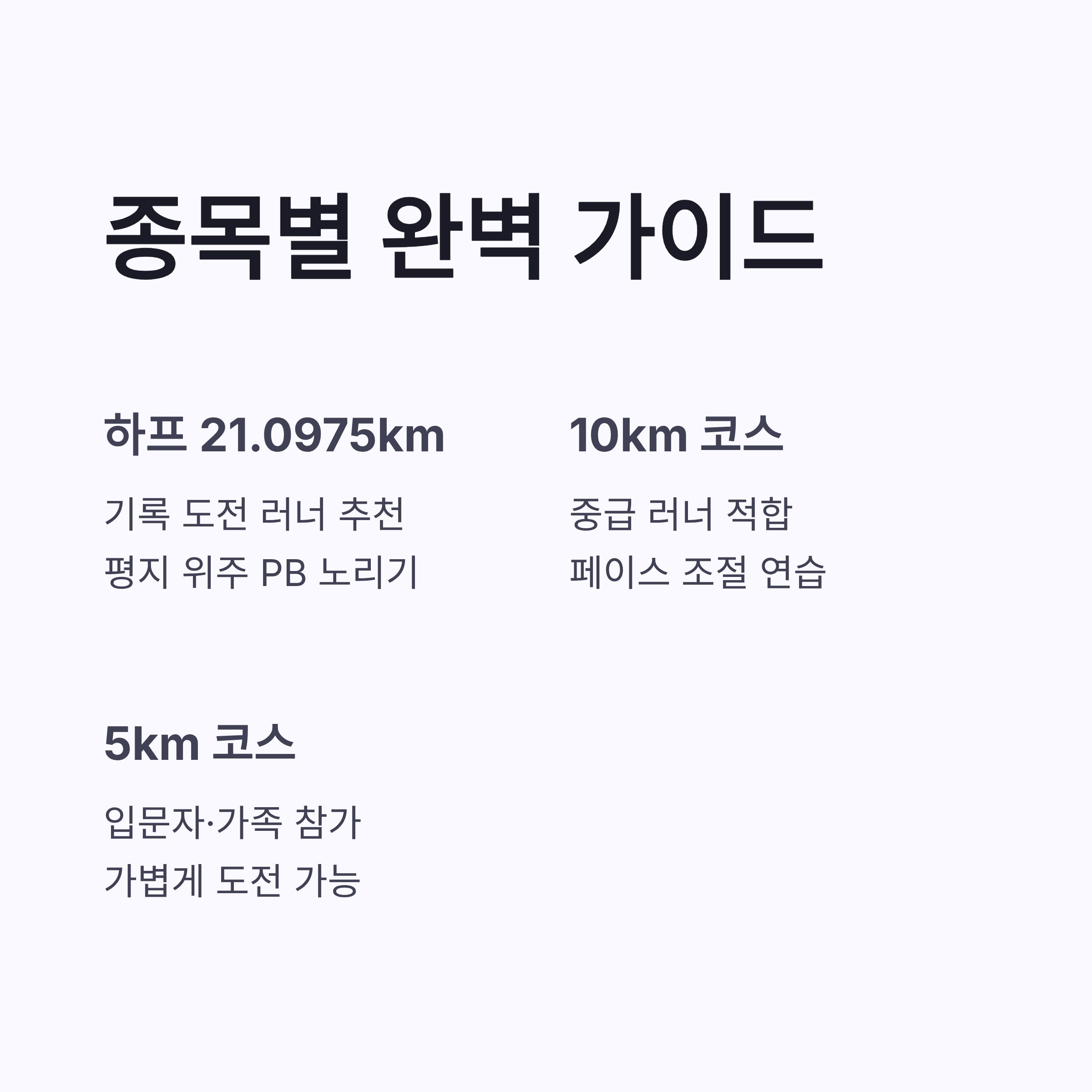 | 5km | 5km | 입문자·가족 | 가볍게 참가 가능 |