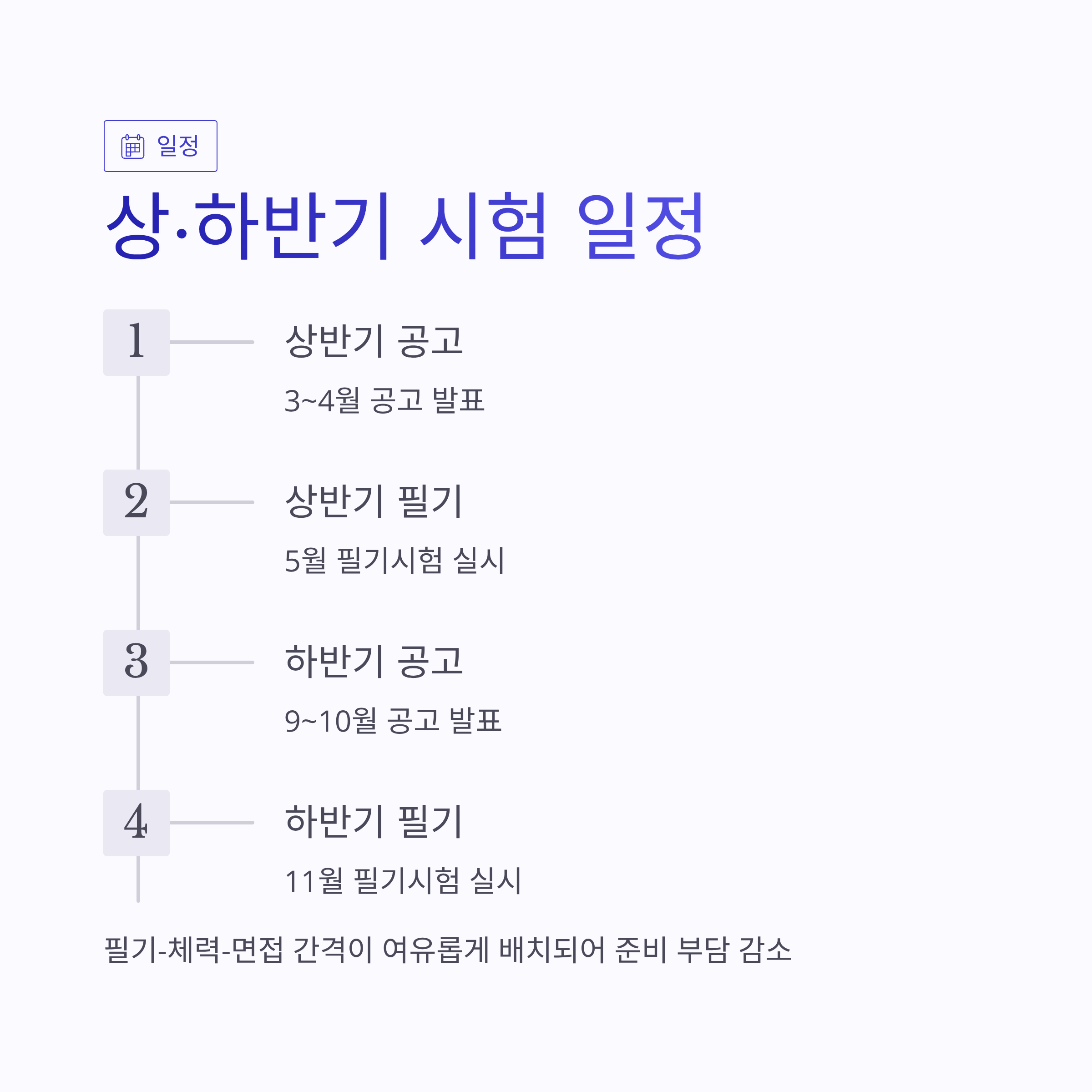 | 하반기 | 9~10월 공고 / 11월 필기 | 경채·전문직 확대 |