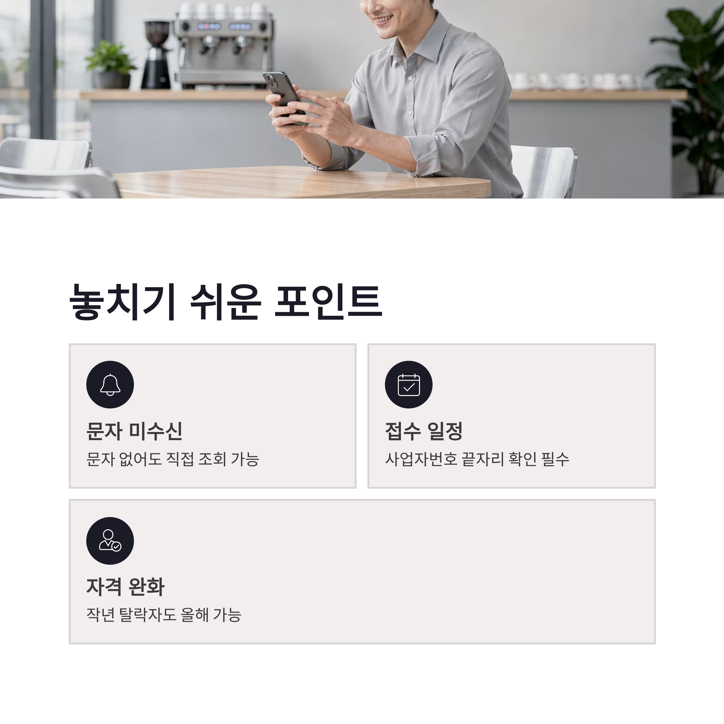 실제로 제 주변 자영업 하시는 분도 “작년엔 탈락했는데 올해는 대상 문자 받았다” 하시더라구요. 신청은 온라인 접수 방식이고, 사업자번호 끝자리 기준으로 순차 접수 진행됩니다.