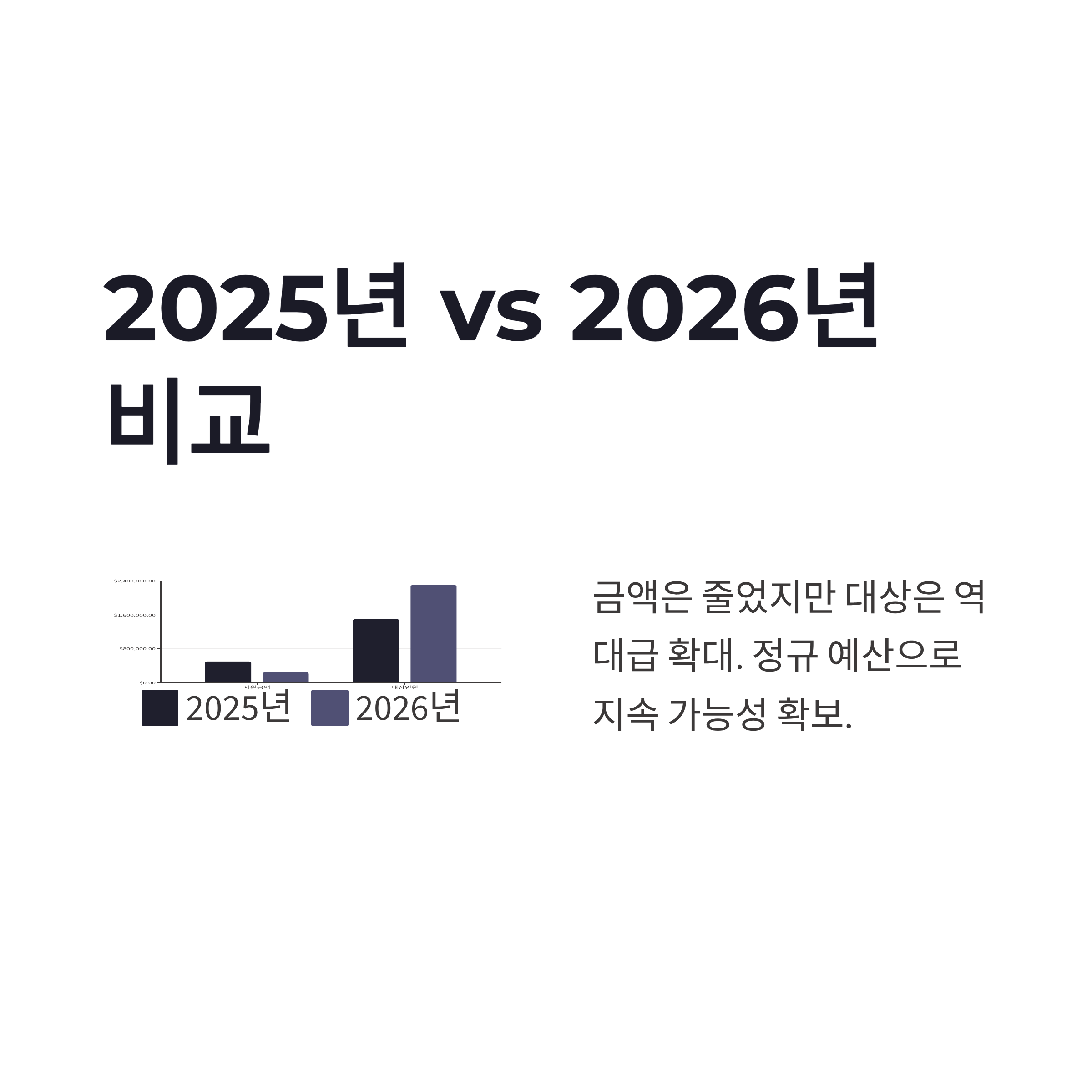 솔직히 금액이 줄어든 건 아쉽죠. 25만원이면 체감이 예전만큼은 아닙니다 ㅠㅠ 하지만 대상 확대라는 장점이 커요. 예산이 정규화되면서 “올해만 주고 끝”이 아니라 지속 가능성이 생겼다는 점도 긍정적입니다.