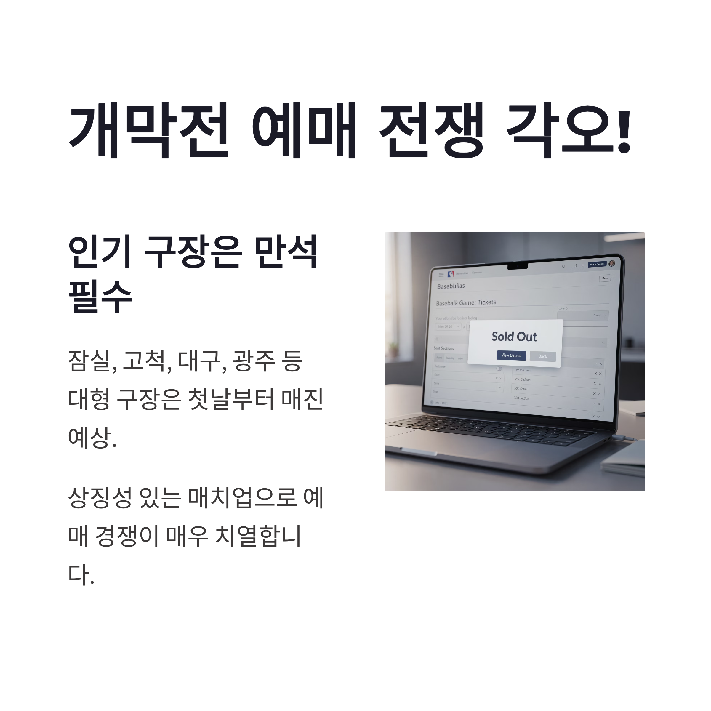 | 예매 경쟁 | 상위 인기팀 매우 치열 |