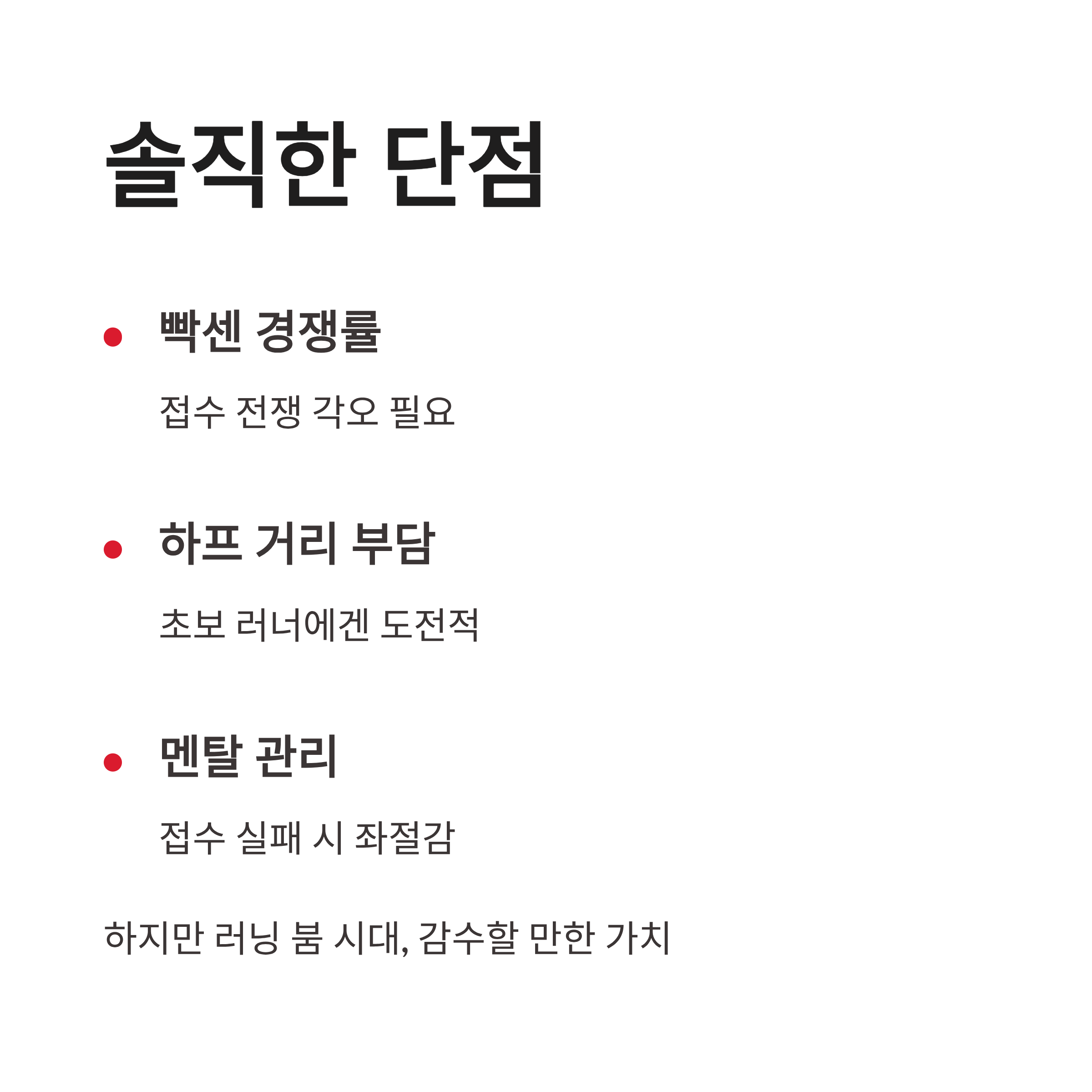 _x000D__x000D_ 요즘 러닝 대회 트렌드가 확실히 바뀌고 있어요. 기록 중심에서 브랜드 경험 + 커뮤니티 쪽으로요. 2026 Run your way HALF RACE SEOUL 뉴발란스 마라톤도 딱 그 흐름 위에 있는 느낌이었구요._x000D__x000D_ _x000D__x000D_ 장점부터 보면,_x000D__x000D_ _x000D__x000D_ * 서울 도심 코스라 접근성 좋음_x000D__x000D_ * 러닝 크루, 개인 러너 모두 어울리는 분위기_x000D__x000D_ * 굿즈 퀄리티가 높다는 평 (이건 매년 인정…)_x000D__x000D_ _x000D__x000D_ 단점도 솔직히 있습니다._x000D__x000D_ _x000D__x000D_ * 경쟁률이 너무 빡셈_x000D__x000D_ * 초보 러너에겐 하프 거리 부담_x000D__x000D_ * 접수 실패 멘탈 관리 필요 ㅠㅠ_x000D__x000D_ _x000D__x000D_ 그래도 요즘 러닝 붐 생각하면, 이 정도는 감수해야 하나 싶기도 하더라구요. 2026 Run your way HALF RACE SEOUL 뉴발란스 마라톤, 확실히 트렌드 한복판에 있습니다._x000D__x000D_ _x000D__x000D_