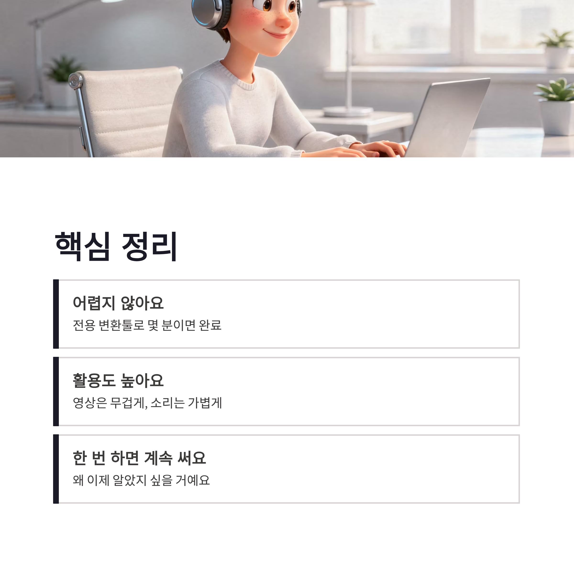 제가 실제로 써본 기준으로 정리해보면 과정은 정말 간단했어요. 복잡한 편집툴 안 써도 되고, 변환 프로그램 하나면 충분하더라구요.
