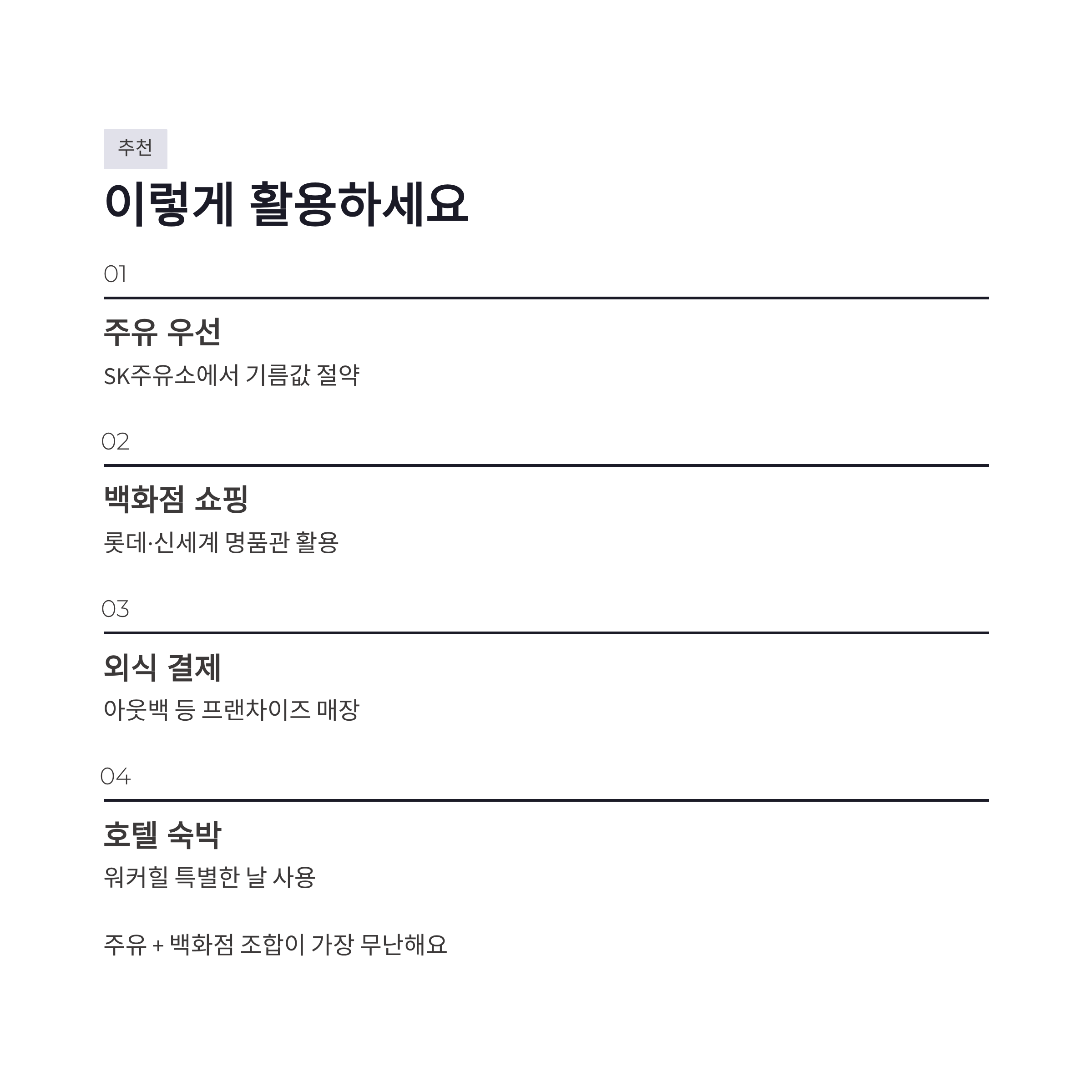 | 구분 | SK상품권 사용처 예시 | 사용 포인트 |