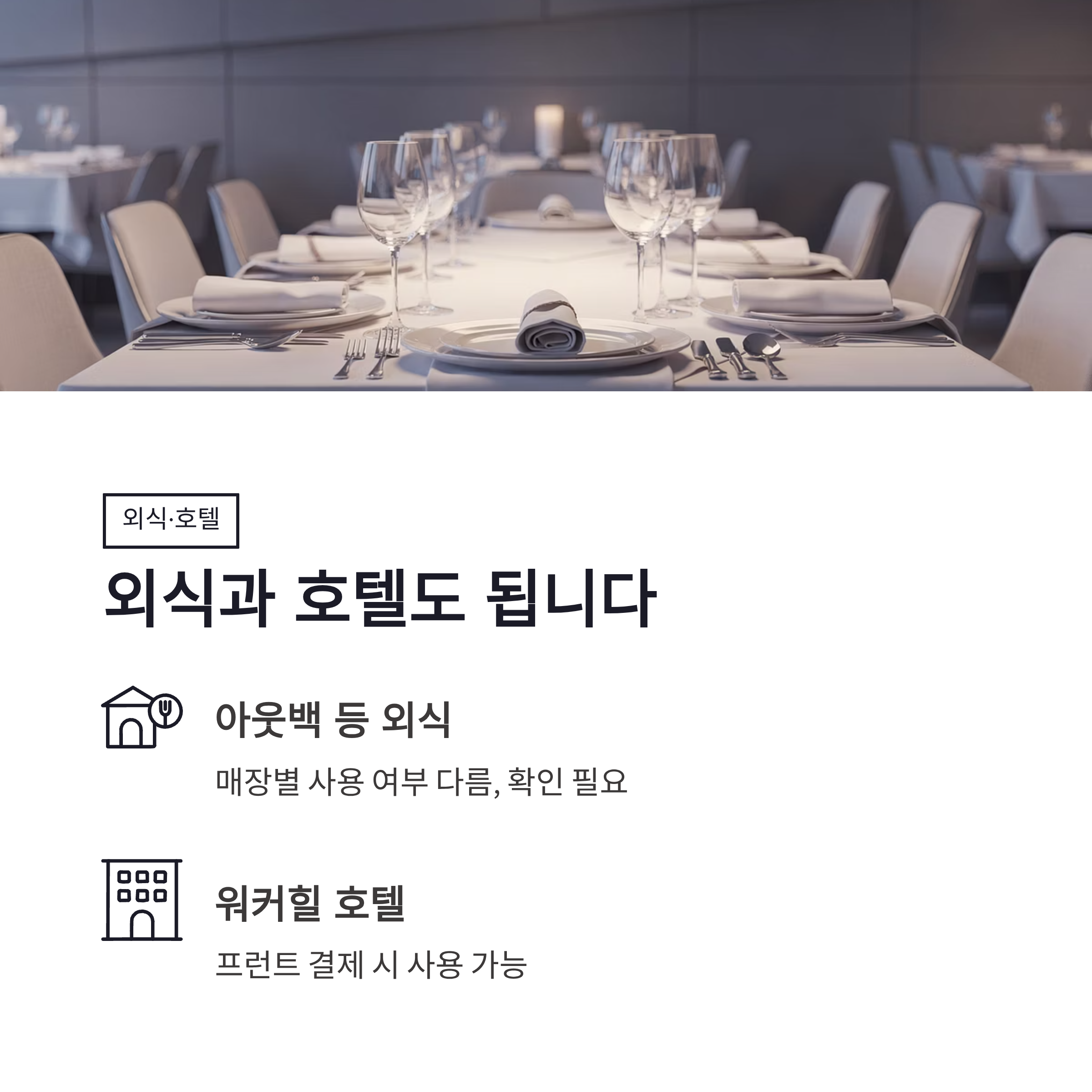 | 외식 | 아웃백 스테이크하우스 등 | 매장별 사용 여부 다름 |