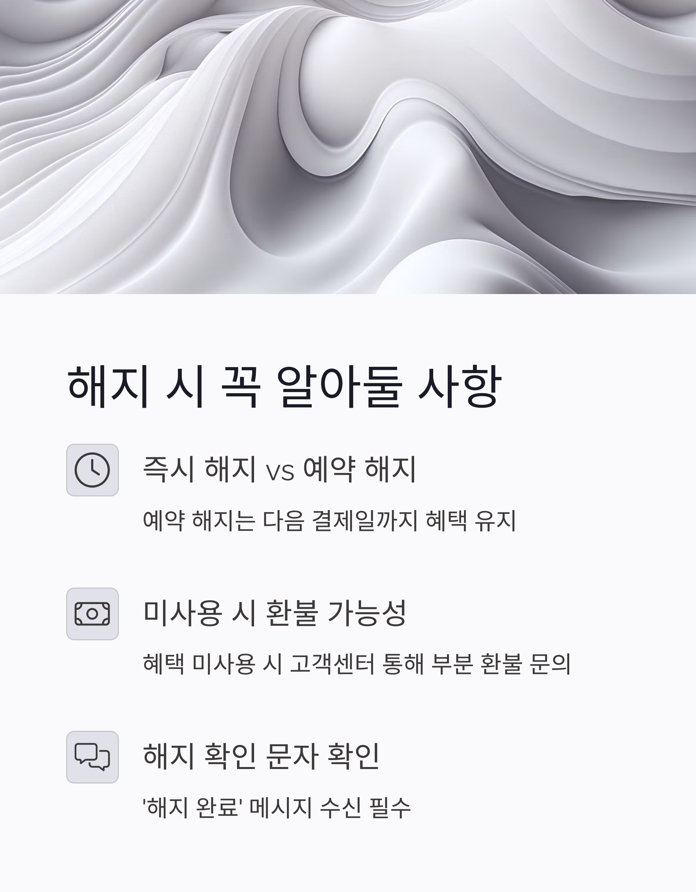 - 해지 전 혜택 사용 여부를 확인해보세요